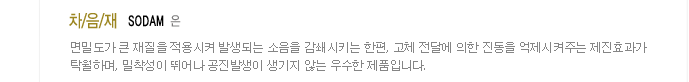 Â÷À½Àç´Â ¹ß»ýµÇ´Â °¢Á¾ ¼ÒÀ½À» °¨¼â½ÃÄÑ ÄèÀûÇÑ È¯°æÀ» âÃâÇÏ¸ç ¼ÒÀ½Áøµ¿À» ¾ïÁ¦½ÃÄÑÁÖ´Â Á¦ÁøÈ¿°ú°¡